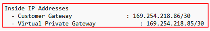 AWS config 파일에서 #3 Tunnel Interface Configuration - Inside IP Addresses 참조