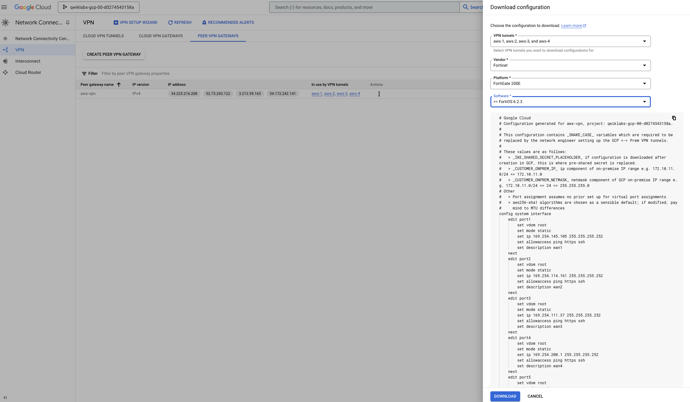 참고 : GCP의 HA VPN도 AWS처럼 config를 다운받을 수는 있습니다. (Classic VPN은 불가)