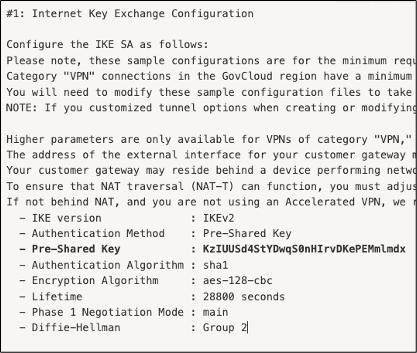 IKE 사전 공유키는 기존에 다운받은 AWS의 config파일내에 존재합니다.