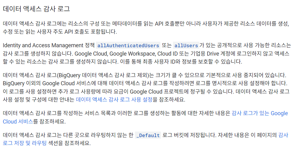 각 로그에 대한 설명 : https://cloud.google.com/logging/docs/audit?hl=ko#data-access
