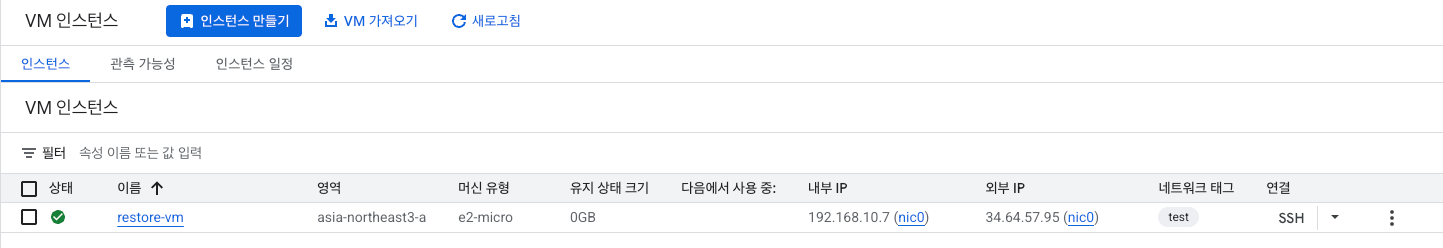 스냅샷을 사용하여 신규 디스크를 만들고, 이를 바탕으로 새로운 VM(GCE) 인스턴스를 생성할 수 있습니다.