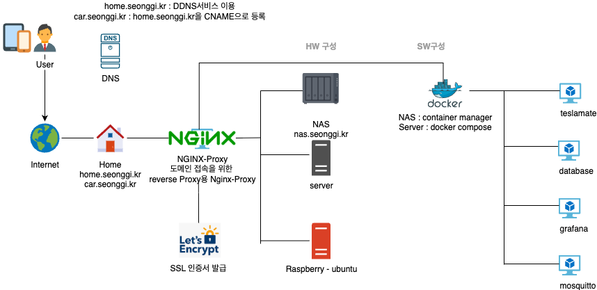 nginx의 reverse proxy를 이용하여 도메인에 SSL인증서를 발급받아 https를 사용하여 자기 도메인으로 테슬라메이트를 접속할 수 있습니다.