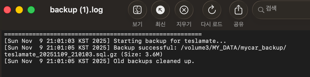 | TeslaMate (테슬라메이트) 자동백업 스크립트 (0) | 2025.10.27 |